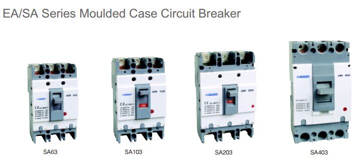 SA/EA series moulded case circuit breaker is suitable for industrial or commercial power and lighting with AC50/60Hz,rated working voltage up to AC600V/DC250V,rated current up to 1200A.It is a kind of economical breaker with the characters of stable and reliable function, beautiful appearance, small size and long life. It can be used for conversion of line and infrequent starting motor. It can also be attached to install the accessories which have protection function for avoiding loss-voltage, under voltage. The product can install connection line with front board and back board; it also can equip hand-operating apparatus or motor-operating apparatus to control in a remote distance.